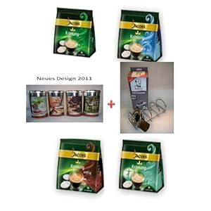 Jacobs Krönung Kaffeepads "kräftig", 4044 Balance,klassich,mild vier neue Sorten und 4 Paddosen TIME 2 + Pad Organizer rabatt in Deutsch